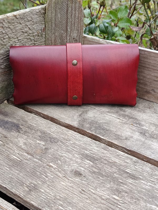 Diese handgefertigte Federmappe aus fein verarbeitetem Leder bietet Platz für Stifte, kleine Utensilien oder sogar eine Lesebrille.