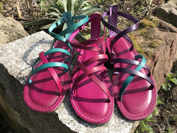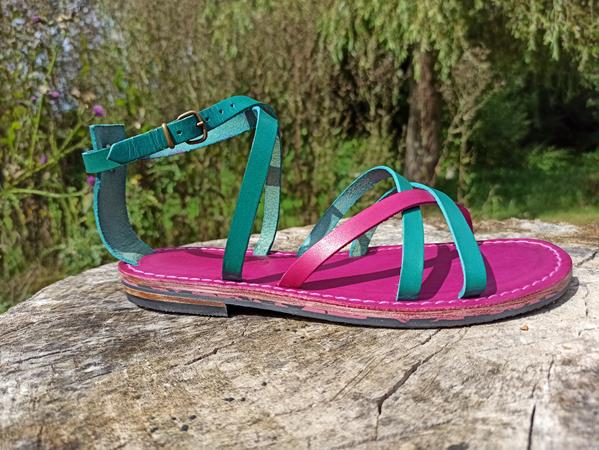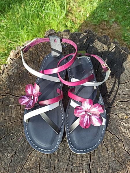 Die Riemensandale Argentario lässt sich farblich individuell gestalten und kann mit einer dezenten Blume ergänzt werden. So entsteht – je nach Kombination – ein Modell für den Alltag ebenso wie für besondere Anlässe. Durch die Riemenführung verläuft kein Riemen direkt über dem Hallux-Bereich, was dieses Modell auch für Kundinnen mit Hallux Valgus angenehm tragbar machen kann. Eine platzierte Blume kann den Bereich zusätzlich optisch zurücknehmen.